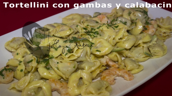 Tortellini con gambas y calabacin